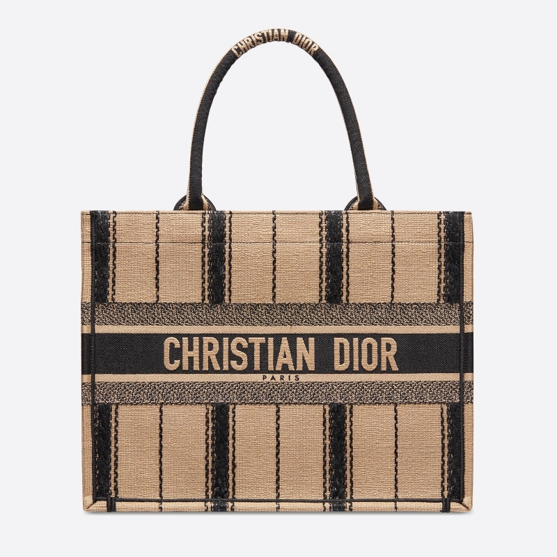 M1296 Dior Book Tote 小號手袋 黑米色Bayadere 刺繡