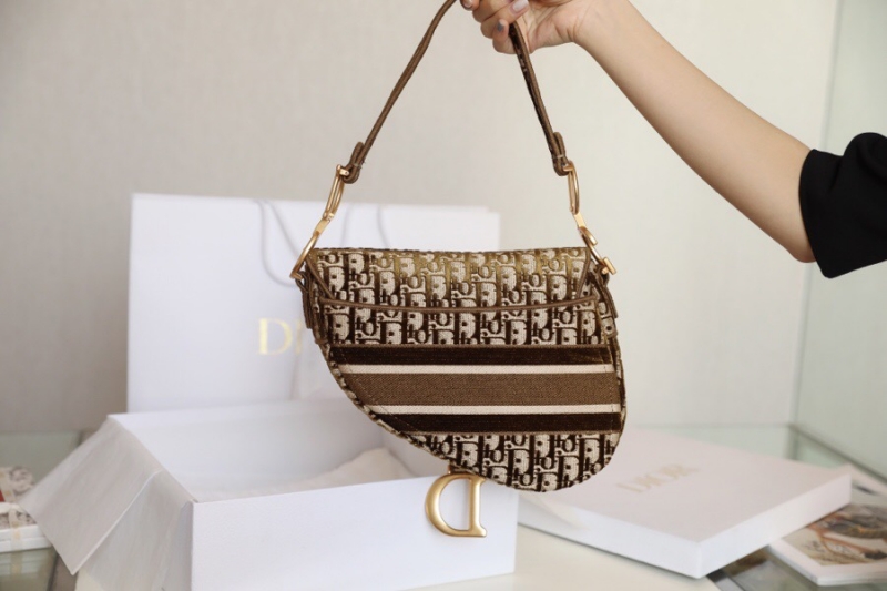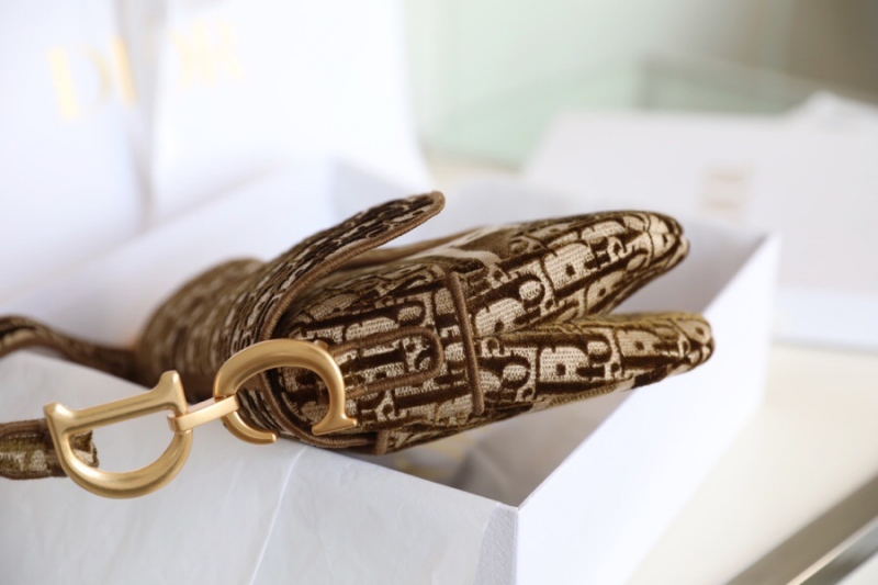 • M0446 Dior Saddle馬鞍包 Dior Oblique 繡花絲絨 棕色