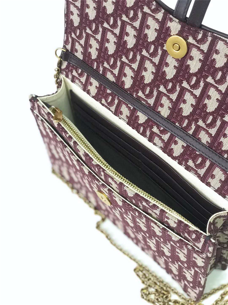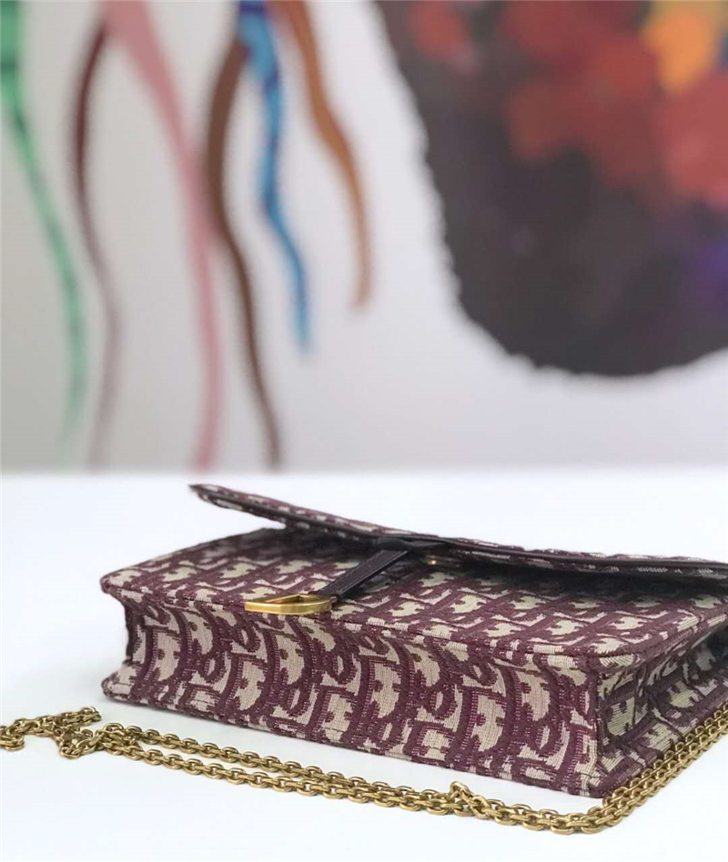 • M5620 Dior Oblique女包 提花帆布 迪奧鏈條包 Dior手拿包 酒紅色