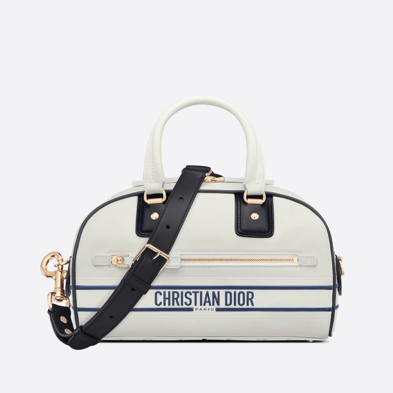 M6209 迪奧DIOR VIBE BOWLING 拉鏈手袋小號 光滑牛皮保齡球包 白色