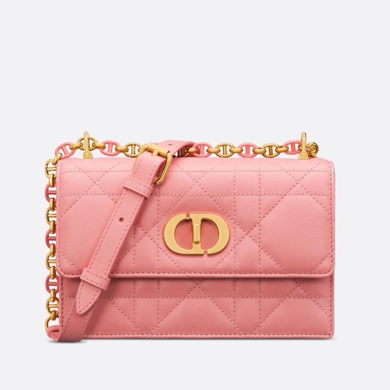 - S5169 迪奧Dior Miss Caro 迷你鏈條手袋 羊皮革超大藤格紋 粉色