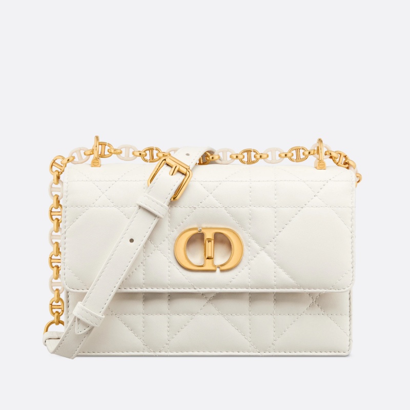 - S5169 迪奧Dior Miss Caro 迷你鏈條手袋 羊皮革超大藤格紋 白色