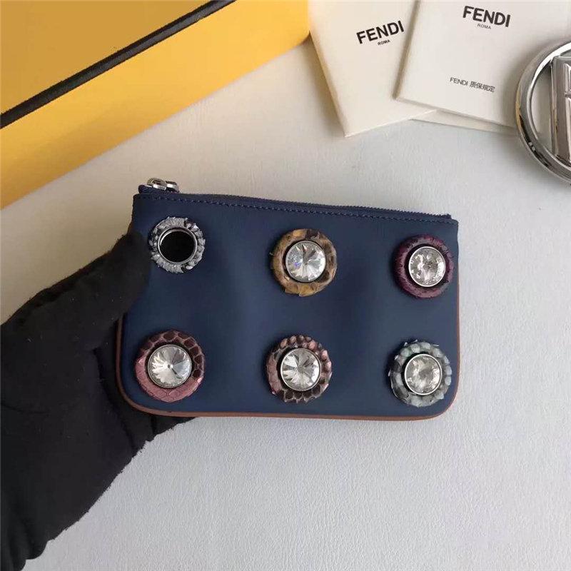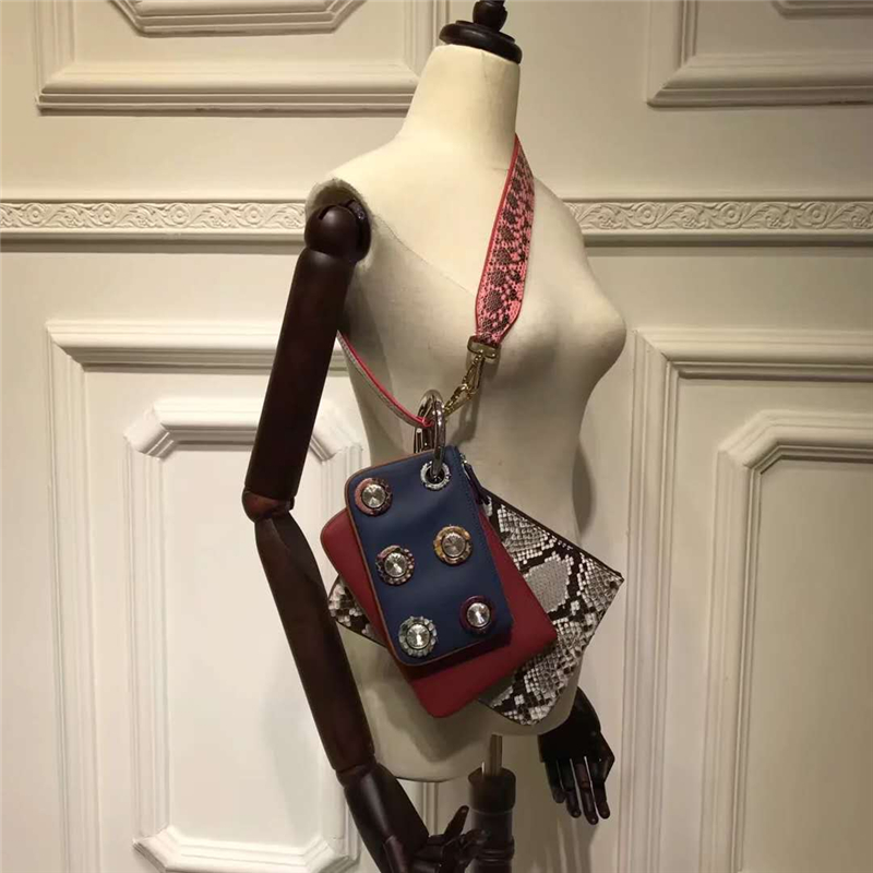 當前位置: 首頁>Fendi|芬迪>Fendi女包> 001 FENDI芬迪 F IS FEND 三套索環 圓形水晶 手拿包 藍紅灰