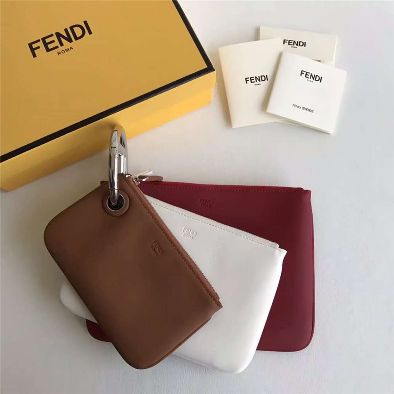 • 001 FENDI芬迪 F IS FEND 三套索環 小牛皮 手拿包 啡白紅