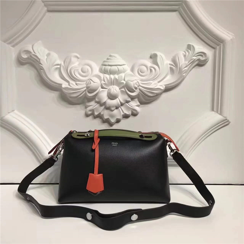 • 149S FENDI 芬迪 2017新款 柔軟小牛皮 拼色波士頓手提包挎包 黑拼紅