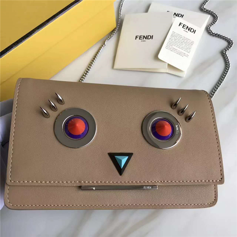• 詳細介紹:Fendi 2017新款 精致小牛皮 鏈條包斜挎包,俏皮新模樣,融合了利落廓形和小巧身段,飾以多彩貼飾和 ROUND EYES主題,拉鏈隔層袋分割出兩個內部夾層,配有可拆卸鏈條肩帶,實用的同時增添了滿滿的個性和新鮮感,虜獲不少少女心!
