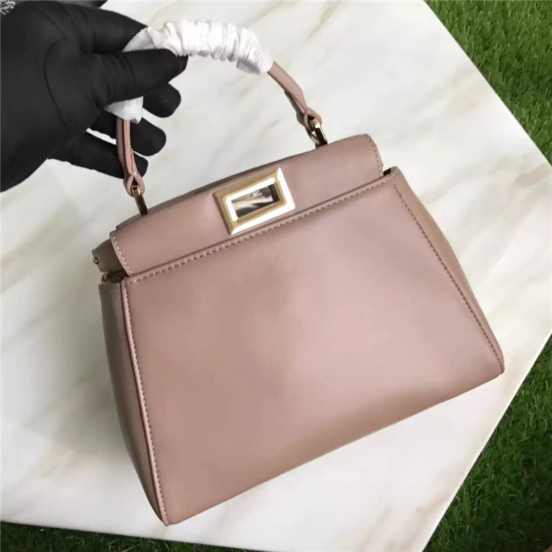 2590 FENDI 芬迪 軟羊皮革手提包 兩個內袋 金屬配件 裸粉