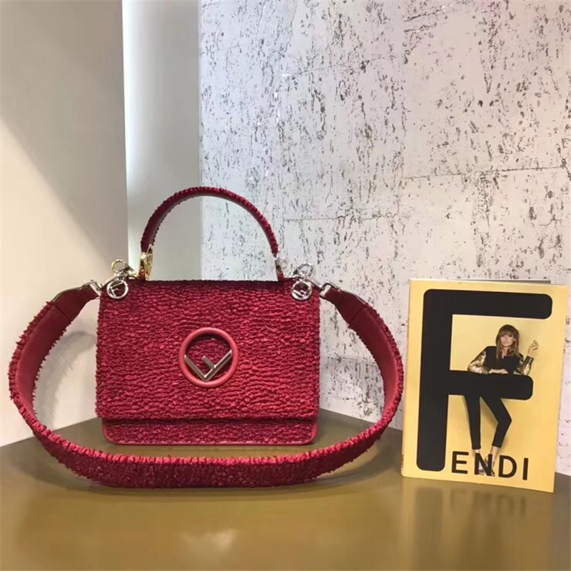 2813 FENDI芬迪 KAN I手袋 絨布制作 原版手提包 芬迪女包 紅色