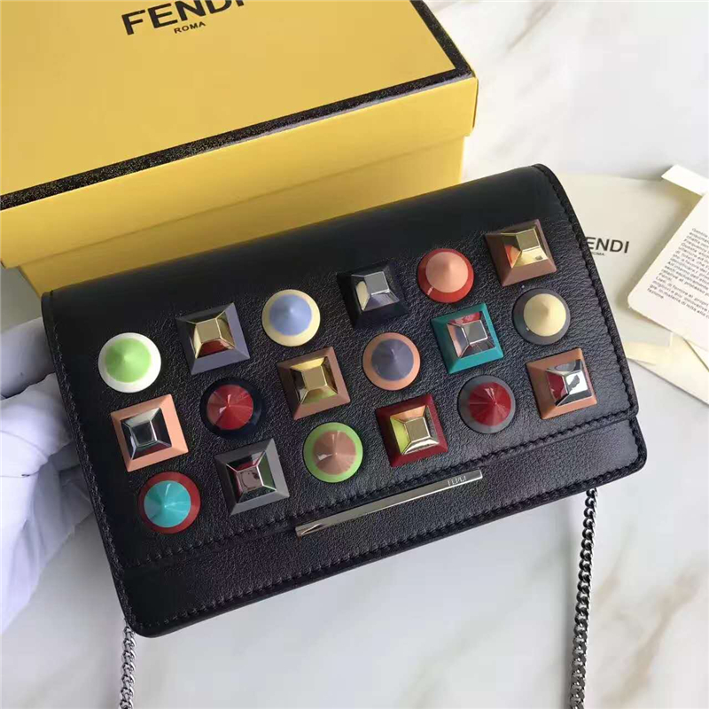 FENDI 芬迪 小牛皮彩色鉚釘包 鏈條包 黑色