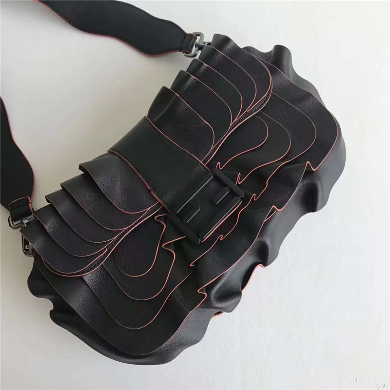 8782 FENDI 芬迪 時裝秀款 波紋荷葉邊 皮革肩包 黑色