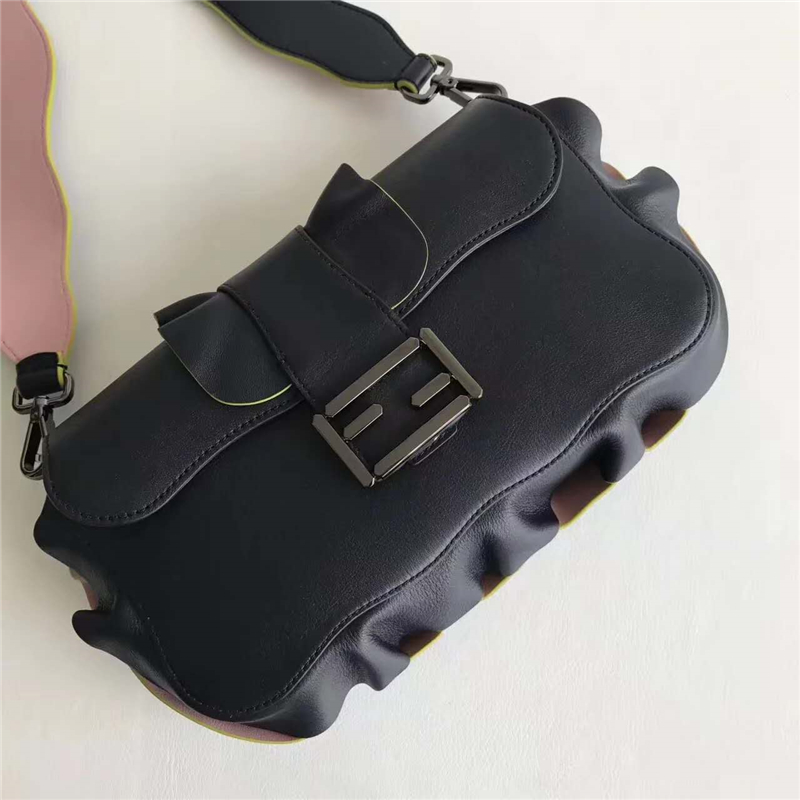 8783 FENDI 芬迪 時裝秀款 寬肩帶荷葉邊 單肩包挎包 黑包黑粉帶