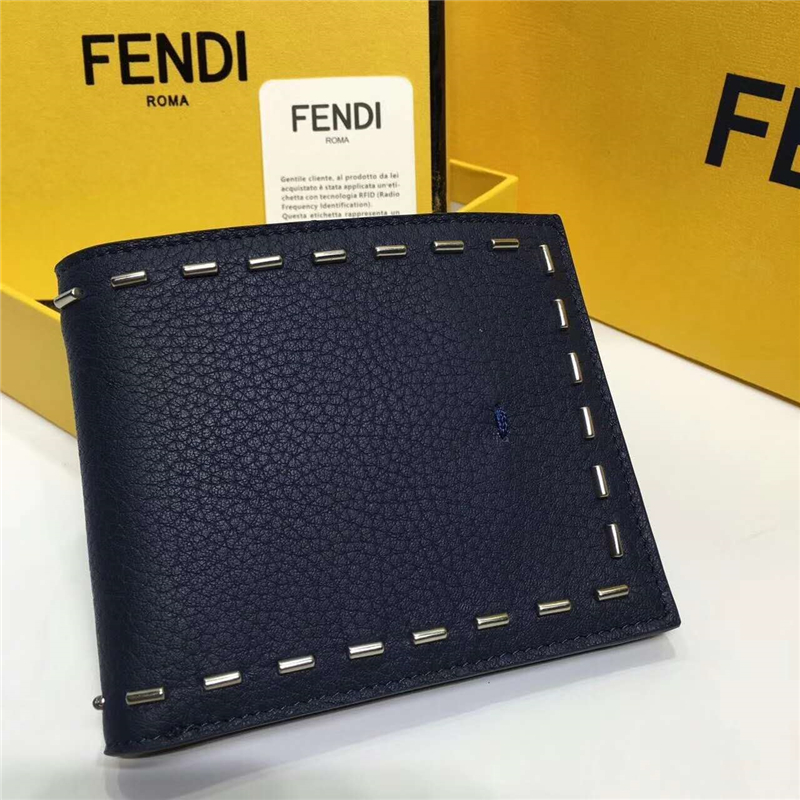 • FENDI 芬迪 荔枝紋白叻釘 羅馬SELLERIA橫式皮夾 黑色