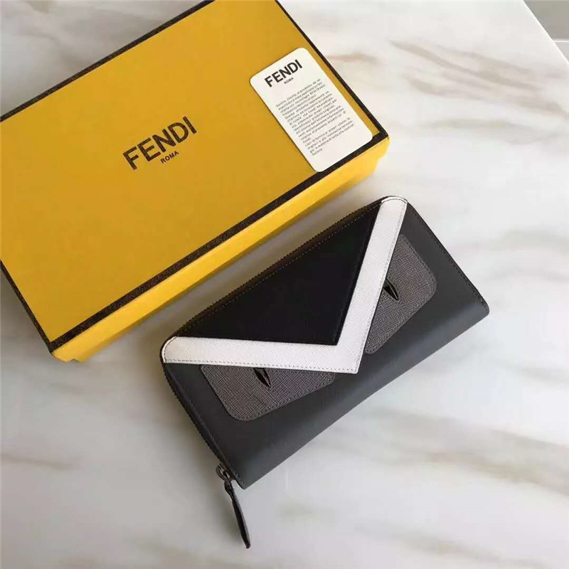 • FENDI 芬迪 2017新款 小怪獸眼睛 真皮休閑長款拉鏈錢包 灰色