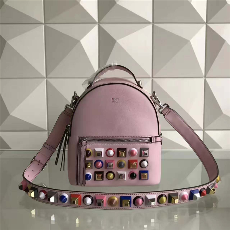 • FENDI 芬迪2017新品 小牛皮 彩色鉚釘包 有機玻璃鉚釘 雙肩包 櫻花粉