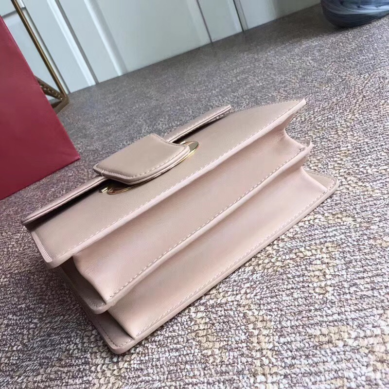 21F893 Ferragamo手包 半環搭扣 菲格拉慕女包 小牛皮 中號 翻蓋鏈條包 裸粉