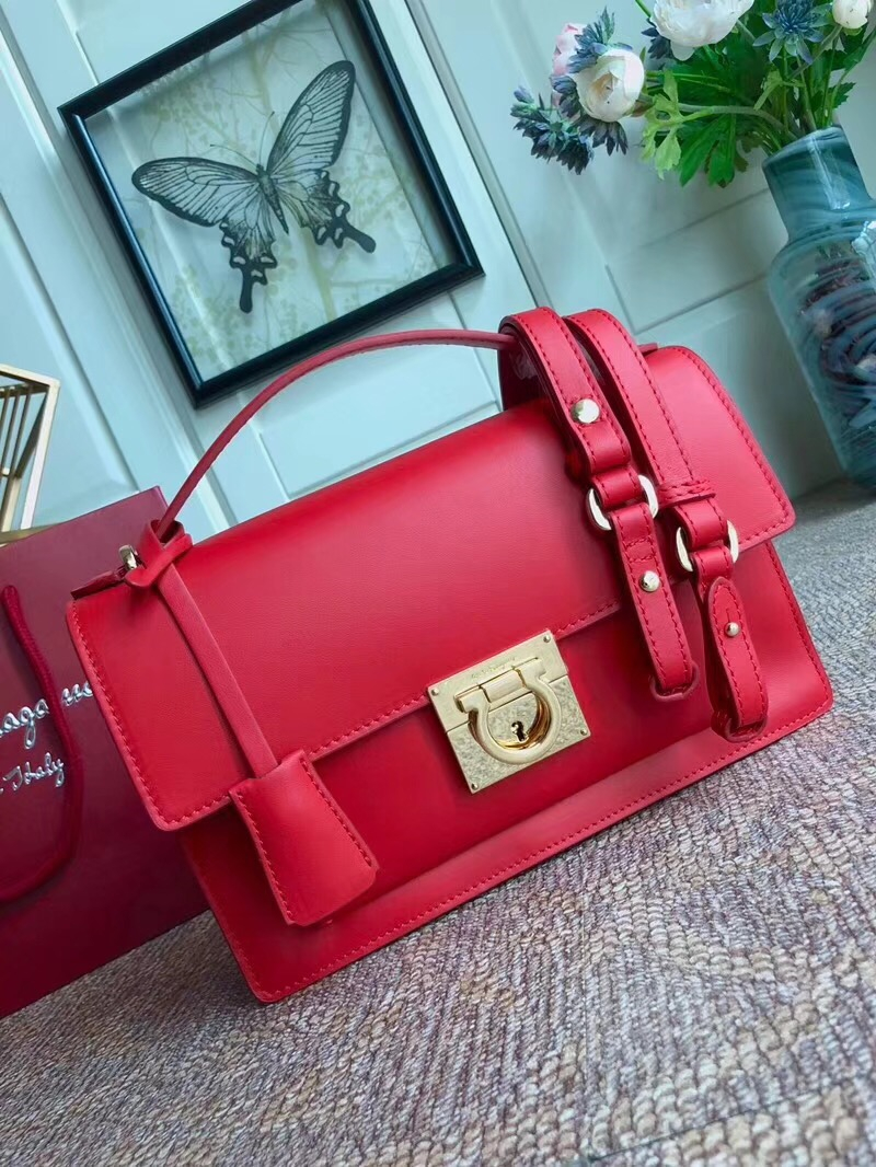 21G179 Ferragamo菲格拉慕 進(jìn)口牛皮 Gancio鎖扣 20英寸 皮革襯里 紅色