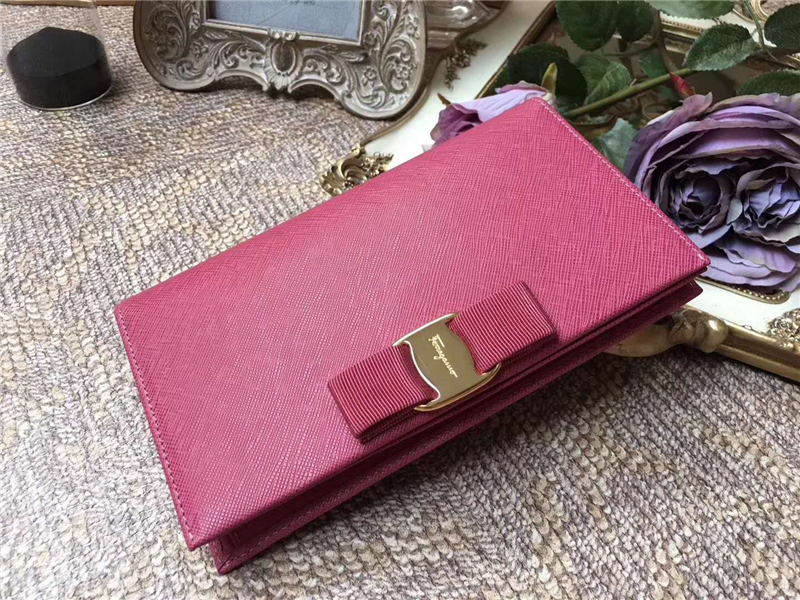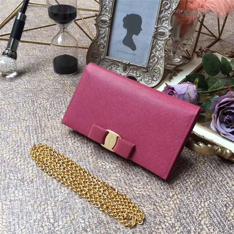 22B875 Ferragamo 菲拉格慕 淡金色Vara蝴蝶結 多功能小包 石楠紅