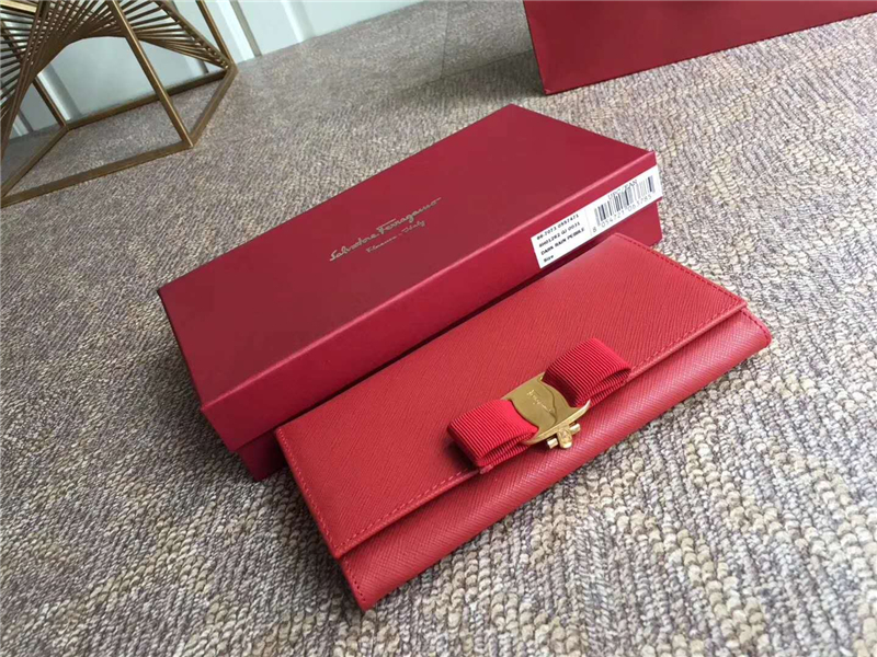 • 22A900 Ferragamo 菲拉格慕 Vara 蝴蝶結(jié)搭扣 女士長款翻蓋錢包 大紅