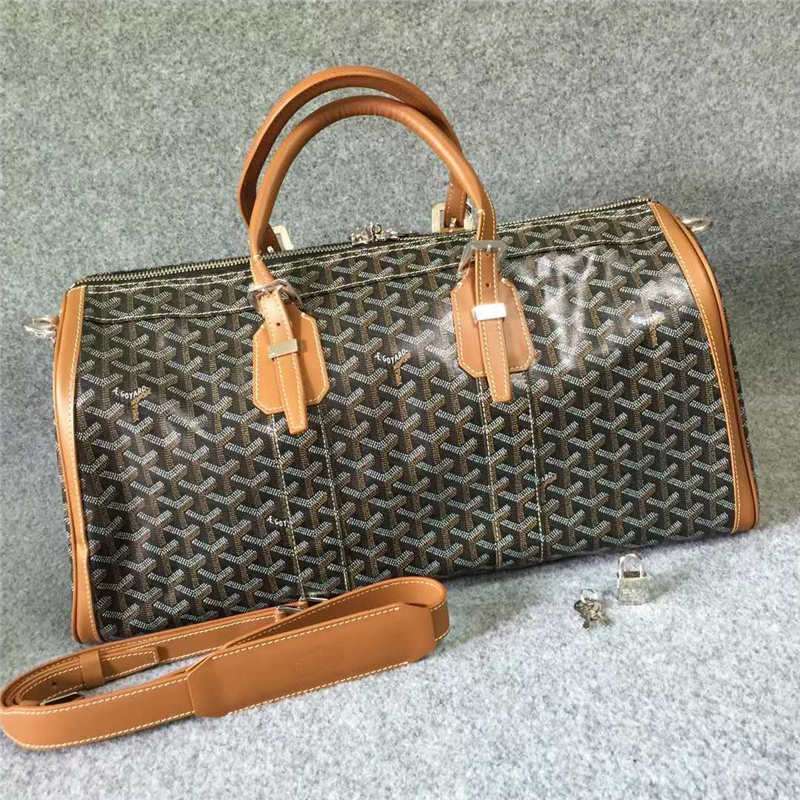 Goyard戈雅旅行包 真皮 手提袋 波士頓旅行袋 啡色