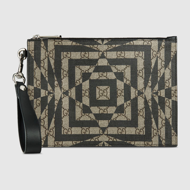 • 411768 Gucci手拿包 古馳男士包 Gucci高級人造帆布 烏木色