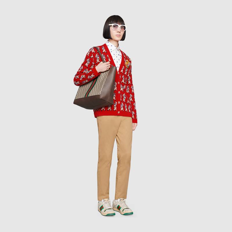 • 547947 Gucci Ophidia系列 三只小豬圖案 GG 高級(jí)人造帆布 購(gòu)物袋