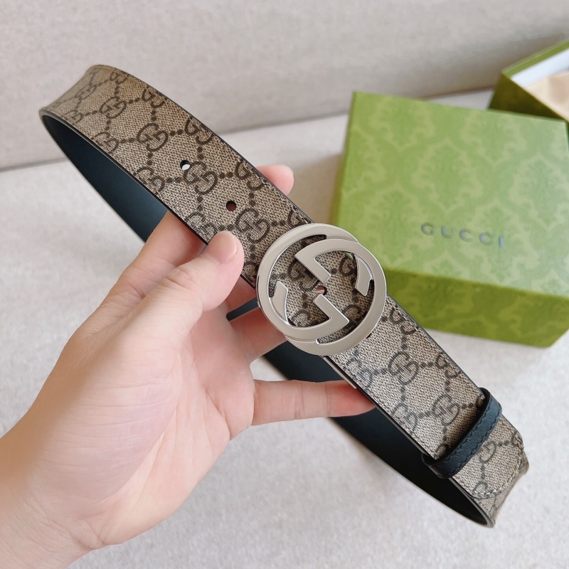 • 411924 Gucci互扣式雙G帶扣GG Supreme帆布男士腰帶 烏木色