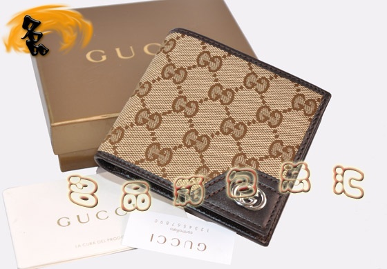 - 181671 超A品質 GUCCI經典款時尚男士錢包 GUCCI新款杏色帆布短款錢包