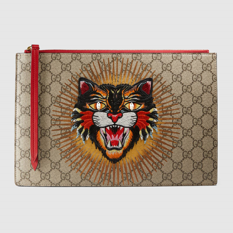 • 詳細(xì)介紹:GG圖案在每一季中均與全新印花和圖案精心搭配。Gucci在早秋系列中引入氣場貓圖案,貫穿男女系列。手拿包采用GG Supreme高級(jí)人造帆布精心打造,可分解材料,中央裝飾精美圖案,獨(dú)特印制打造三維立體效果。柔軟的GG Supreme高級(jí)人造帆布,配以芙蓉紅皮革滾邊,氣場貓亮片貼花,頂部拉鏈封口
