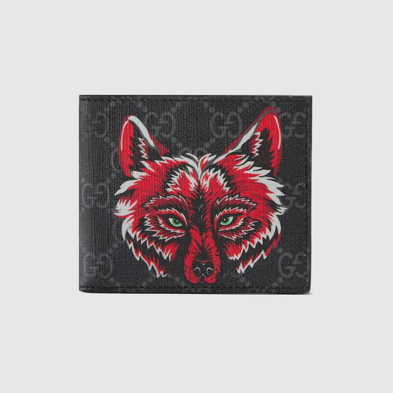 • 451268 Gucci男包 高級人造帆布 Gucci短款錢夾 狼頭印花 黑灰色