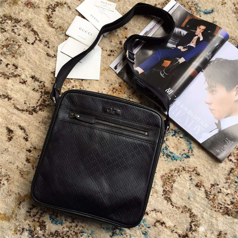 • 110054 Gucci新款雙G花布男士休閑包 Gucci最新款 男包 古奇斜挎包 杏配啡色