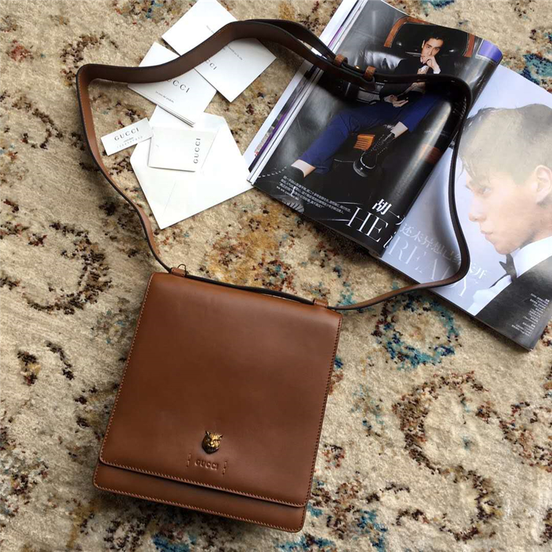 • 詳細(xì)介紹:Gucci郵差包新系列設(shè)計(jì)顛覆了人們以往對(duì)于Gucci刻板守舊的印象而是大膽選用了光滑皮革精致而成外形頗具結(jié)構(gòu)感,正面翻蓋飾以虎形金屬男神必備品