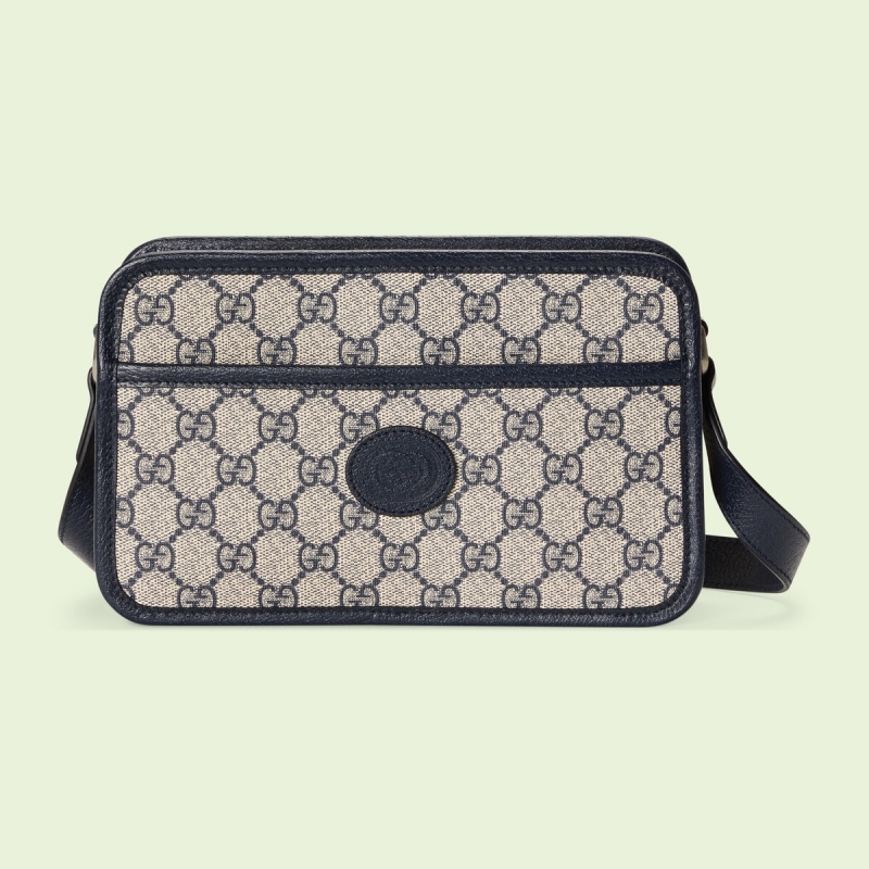 • 結構:米色和藍色GG Supreme帆布,環保材料 藍色皮革滾邊 絨面材質質感超細纖維襯里 皮革互扣式雙G貼飾 最大可容納的手機尺寸:167毫米(長)x76毫米(寬)x9毫米(厚) 1個外部口袋,2個紐扣固定的內部翻蓋口袋 可調節皮革背帶(50厘米高) 拉鏈開合