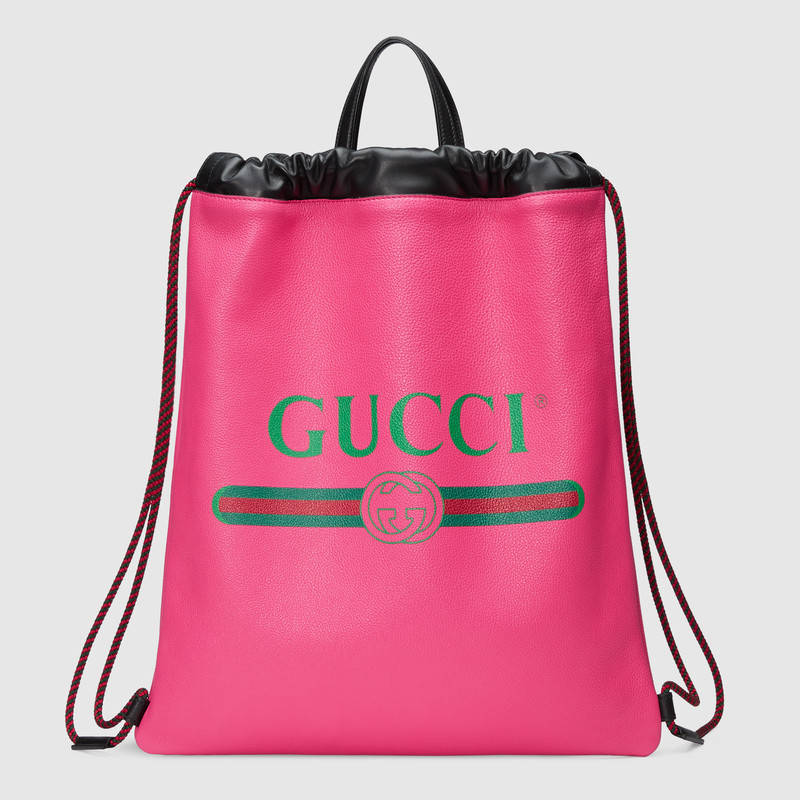 • 詳細介紹:靈感源自八十年代的復古印花,將Gucci標識引領至時尚前沿。復古風格圖案在抽繩背包正面精彩呈現,以柔軟的織紋皮革精心打造。兩個皮革提手使此款背包可以作為購物袋攜帶。