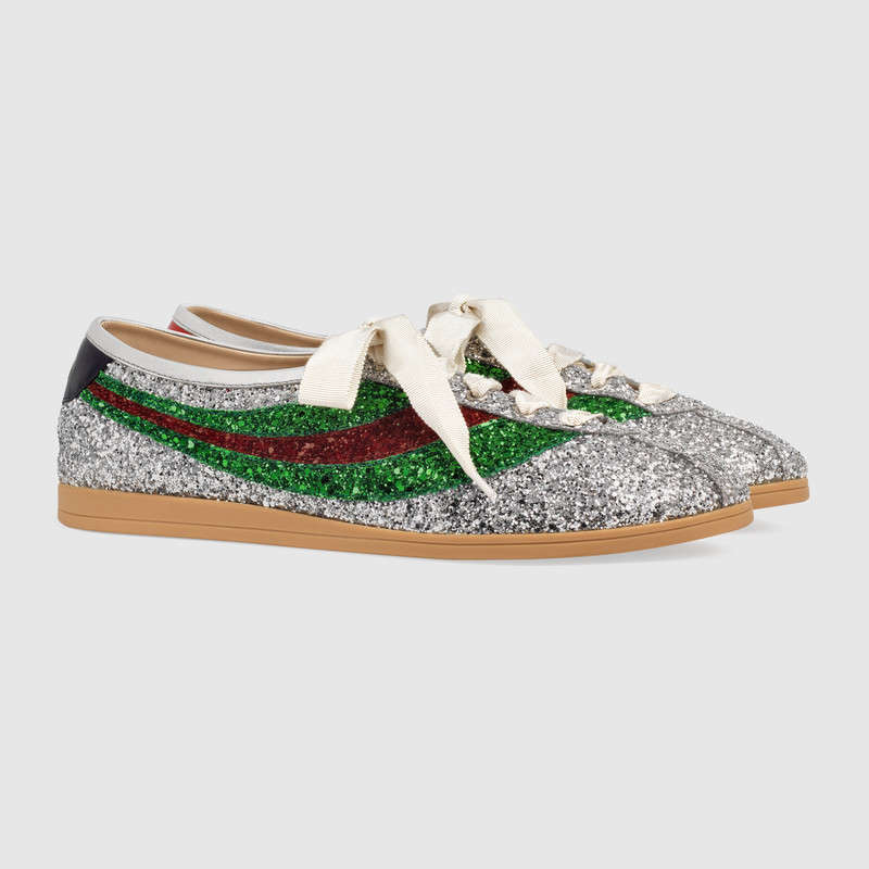 483273 GUCCI Falacer織帶裝飾 復古風 閃光運動鞋 閃光銀色