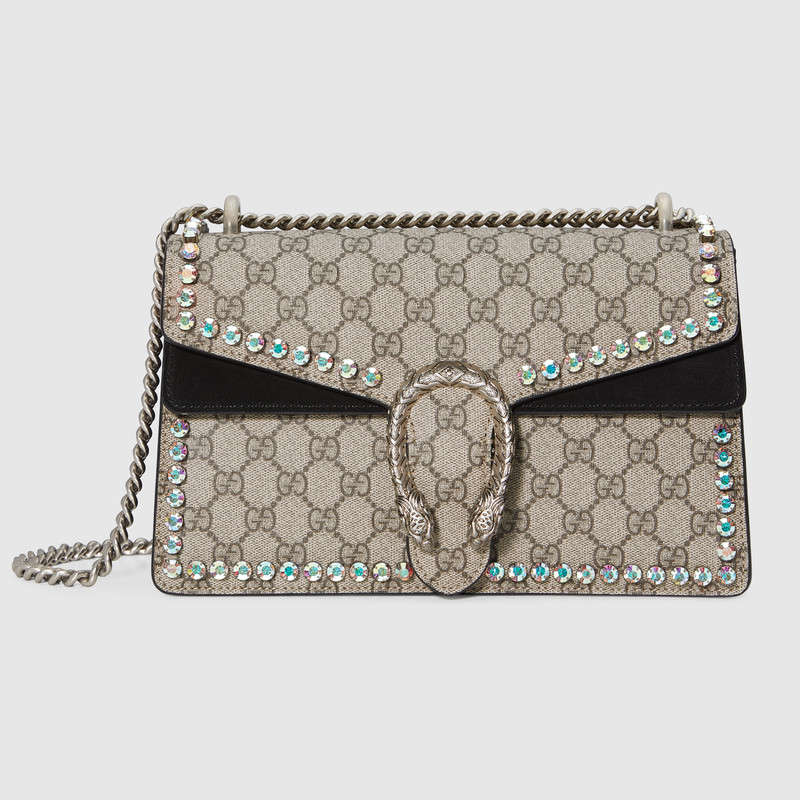• 詳細(xì)介紹:Dionysus 系列肩背包,配以如今頗具代表性的織紋虎頭扣——此獨(dú)特細(xì)節(jié)靈感來源于希臘神祇狄俄尼索斯(Dionysus 系列),在神話中,他曾騎在宙斯(Zeus)派來的老虎身上,越過底格里斯河(Tigris)。滑動鏈條包有多種背法,可在肩背和手提之間自由轉(zhuǎn)換。造型邊緣裝飾大號水晶,外形獨(dú)特醒目。