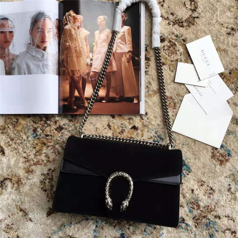 • 400249 Dionysus系列酒神包 磨砂皮 織紋虎頭扣 Gucci鏈條肩背包 黑色