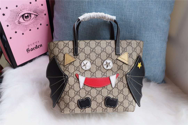• 410812 Gucci手袋 立體卡通圖案 布紋牛皮 古馳mini購物袋 黑色