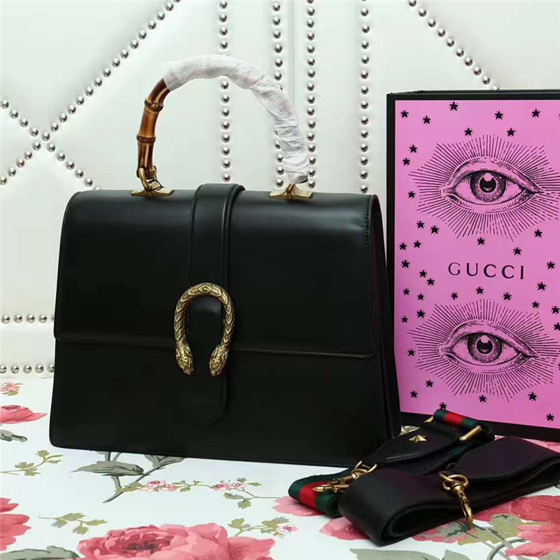 421999 Gucci Dionysus 系列 虎頭扣竹節提手 手提單肩包 純黑色