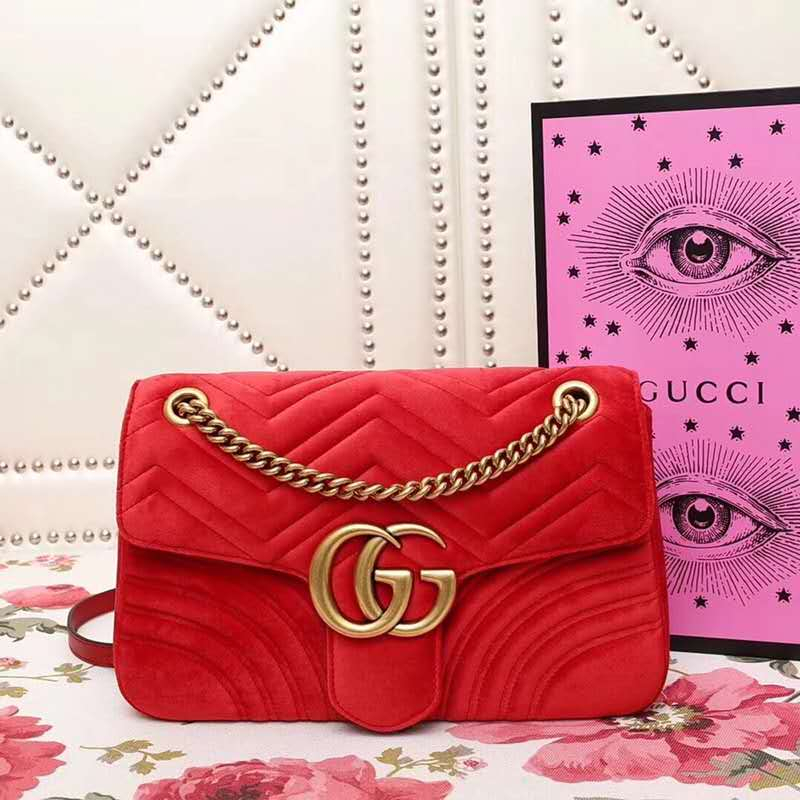 • 443496 Gucci女包 GG Marmont系列 天鵝絨 大號 古馳鏈條包 Gucci斜挎包 芙蓉紅