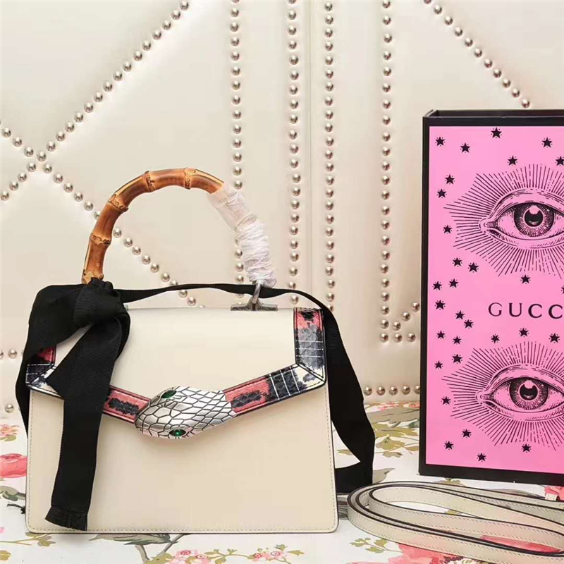 當前位置: 首頁>Gucci|古奇>Gucci女包> 453751 Lilith 2017款 綠寶石蛇頭 竹節提手 蝴蝶結 單肩斜跨包 白色
