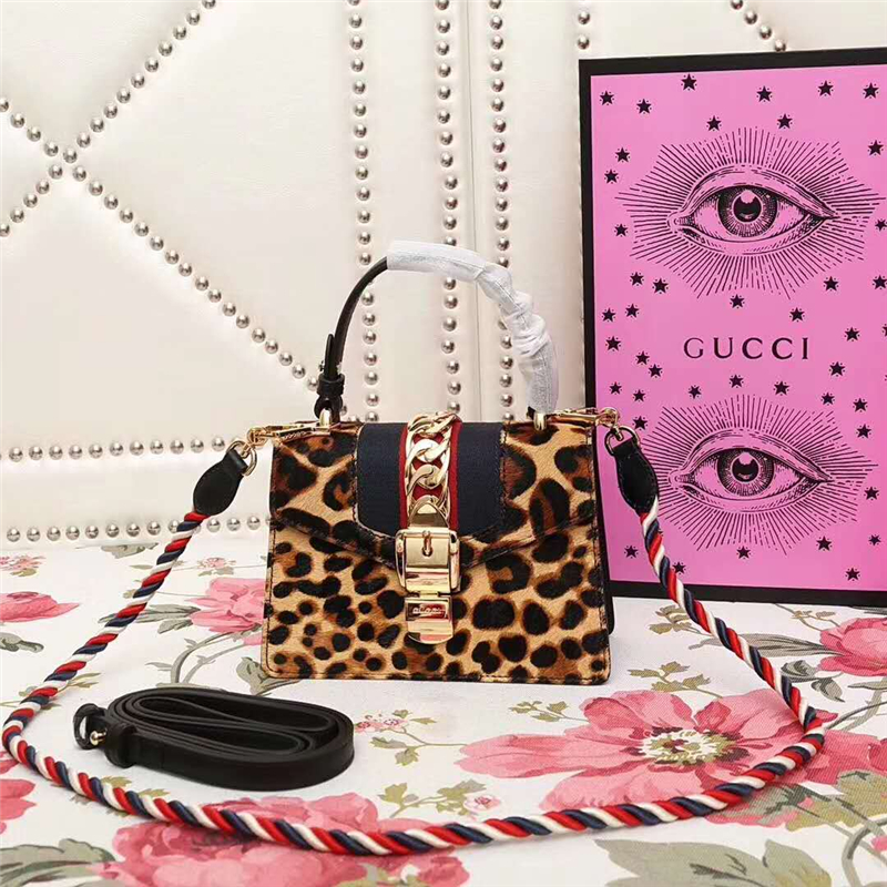 當前位置: 首頁>Gucci|古奇>Gucci女包> 470270 GUCCI Sylvie新款 豹紋金鏈扣 編織繩肩帶 手提肩包 啡色