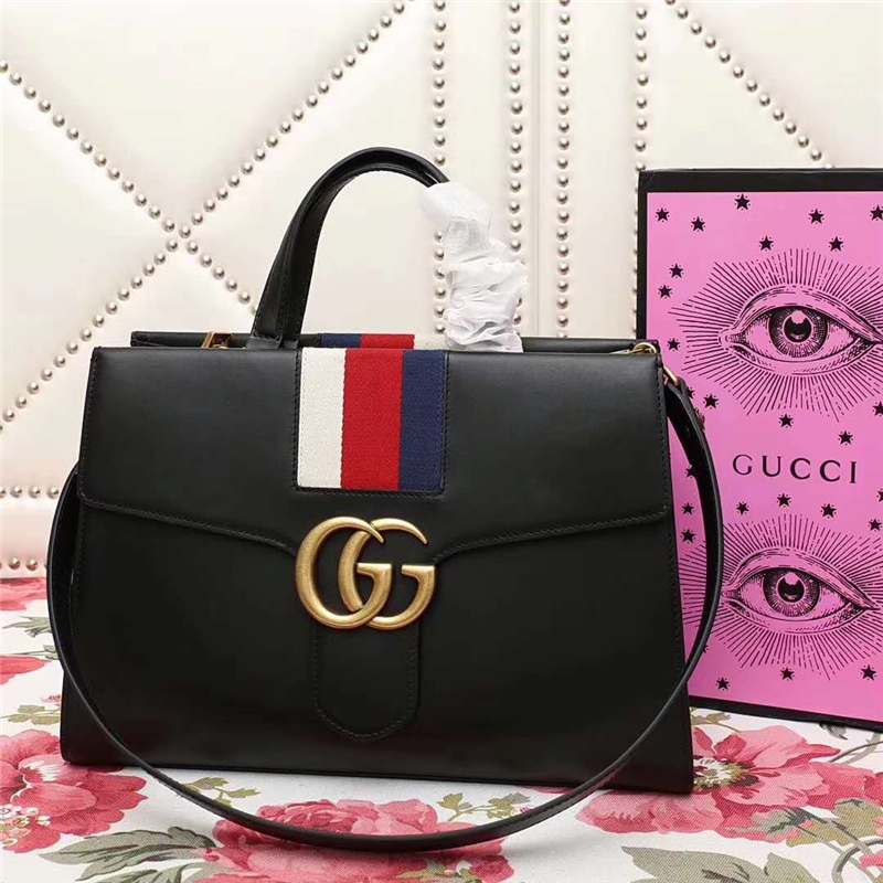 • 476470 GUCCI 新款 牛皮 GG翻蓋單肩包 黑色