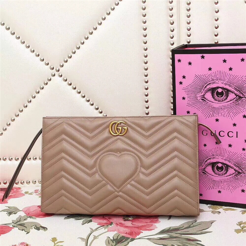 • 488450 Gucci包包 古馳手拿包 波浪紋鏈條包 進口小牛皮 黃銅 米色