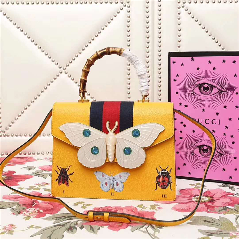 • 488691 Gucci 2017秋冬走秀款 竹節提手 蝴蝶配飾 手提單肩包 黃色
