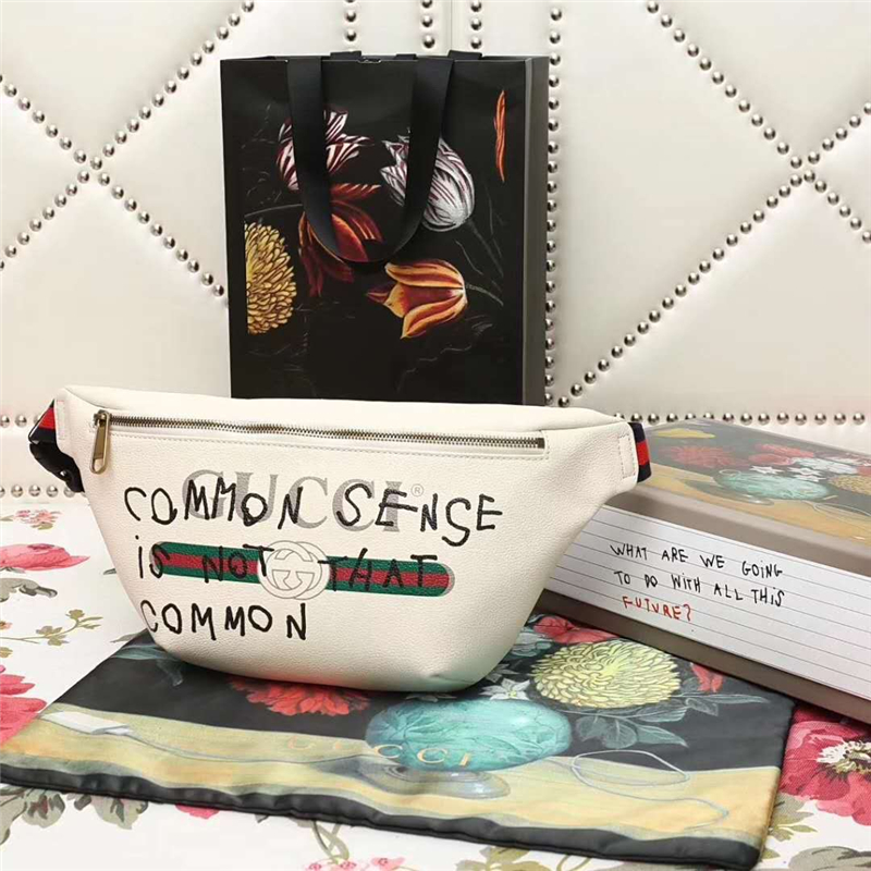 493869 GUCCI 新款大貨 進口牛皮 彩印涂鴉 休閑腰包 白色