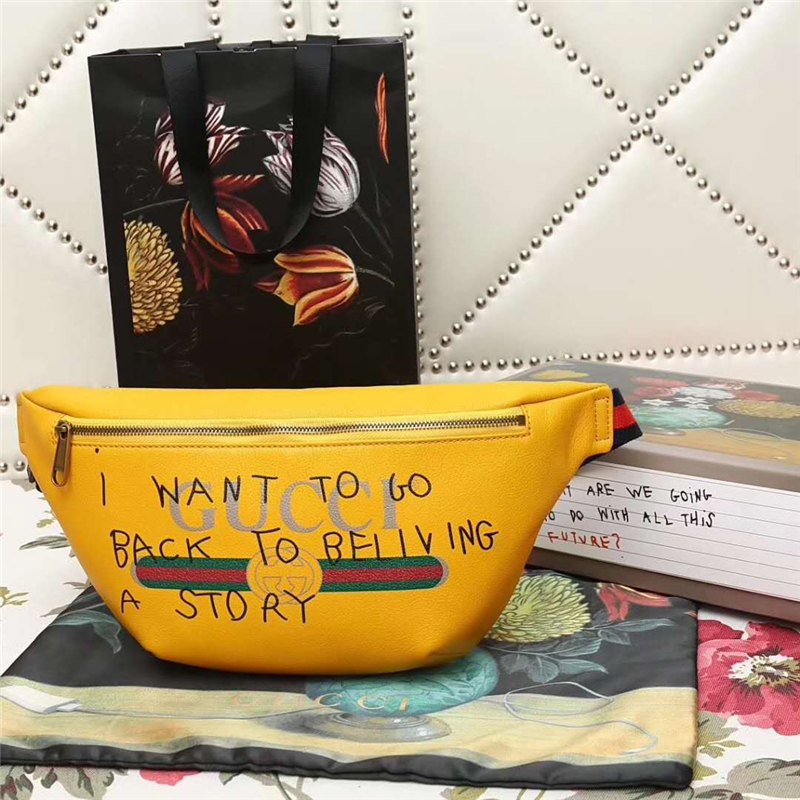 - 493869 GUCCI 新款大貨 進口牛皮 彩印涂鴉 休閑腰包 黃色