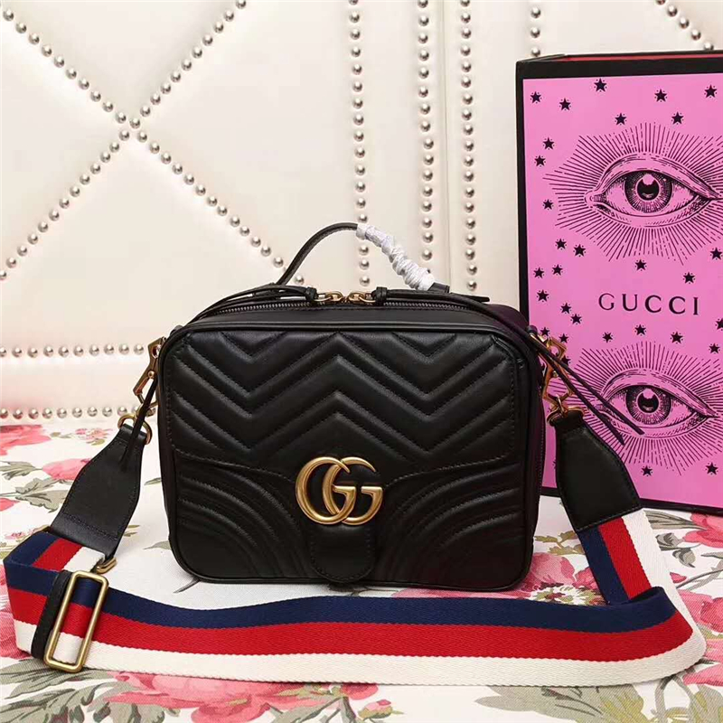 498100 新款 GG Marmont系列 絎縫波浪紋 織帶 手提斜跨包 黑色