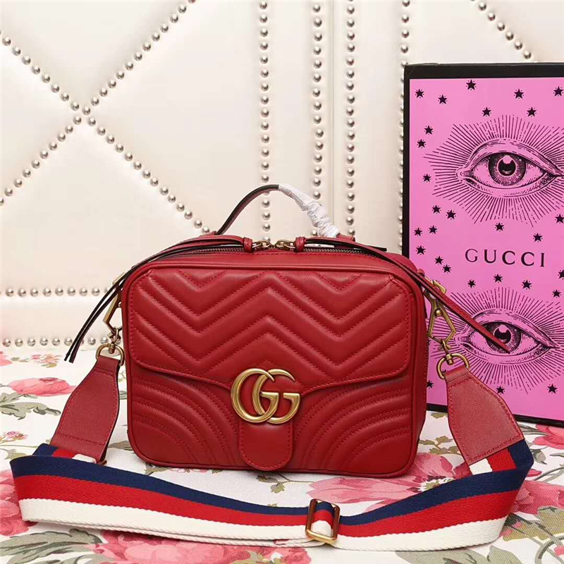 498100 新款 GG Marmont系列 絎縫波浪紋 織帶 手提斜跨包 紅色