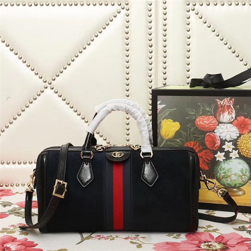 • 524532 Gucci Ophidia系列 麂皮 紅藍織帶 GG標識 古馳波士頓手提包 黑色