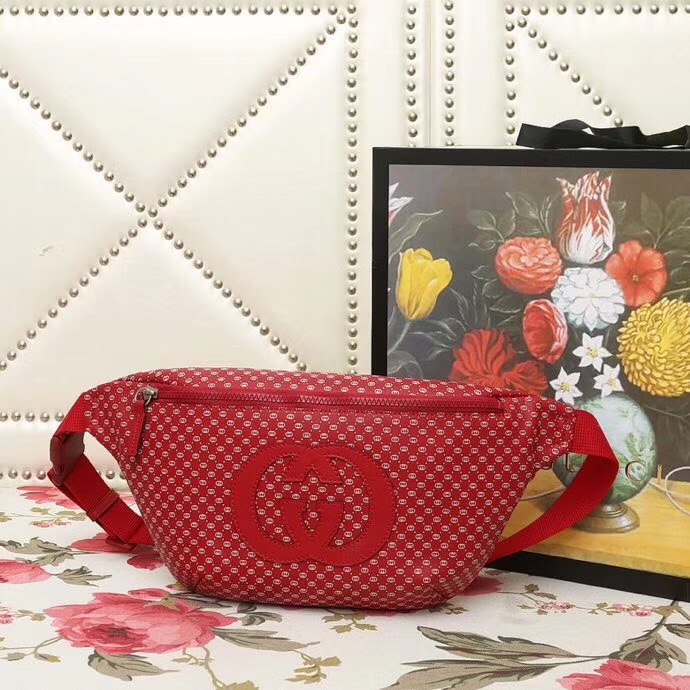 536416 2018 Gucci-Dapper Dan聯名系列 GG圖案皮革 腰包 紅色